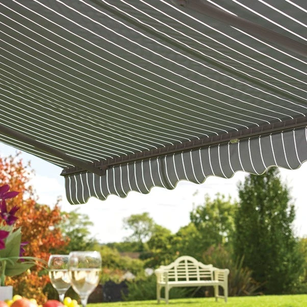 The Greenhurst Easy Fit Awning has a high quality 300gm polyester fabric. They are ideal to extend the home into the garden by providing simple yet effective cover from sun or showers. Ideal for patio and decking areas. Simple to use, they winch in and out effortlessly. Easy to install with simple to follow instructions. The awning can easily be removed from the brackets for winter storage. Easy to install and erect. Robust lightweight metal frame. High quality 300gm polyester fabric. Protects from Sun and Showers. Retractable when not in use. Simple to use.