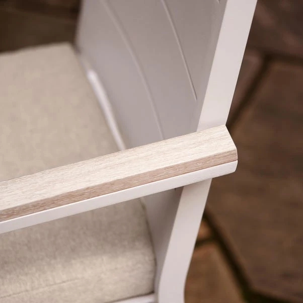 Featuring 4 Dining Chairs and 1 Dining Table with a powder-coated aluminium frame, this set is complemented by Ash-coloured polywood table top. The comfortable, season-proof cushions in Putty Olefin fabric are resistant to stains, fading, and quick-drying. Perfect for any outdoor setting, this set comes with a 3-Year Structural Guarantee and should be covered with an Aerocover when not in use.
