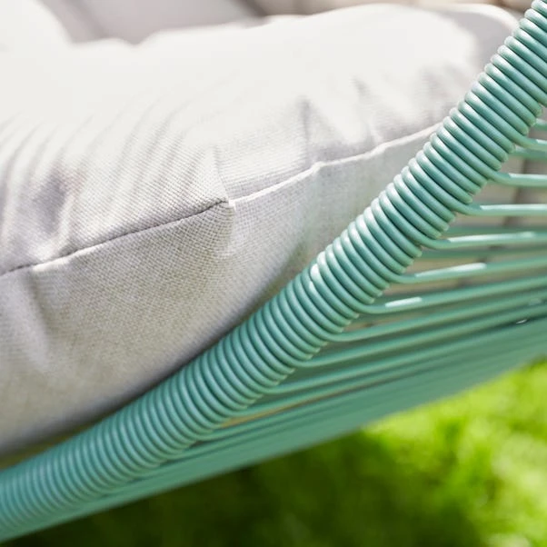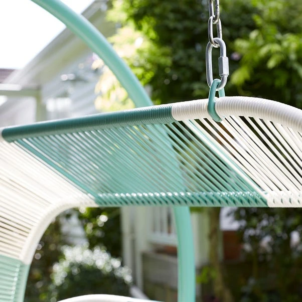 Elevate your outdoor lounging experience with the Santorini Double Egg Chair. Designed to comfortably seat two, this hanging chair combines a bold, contrasting colour palette with a unique rattan weave and a special shape design. Crafted with a powder-coated steel frame and weather-resistant materials, it ensures lasting durability and style for any garden or patio.